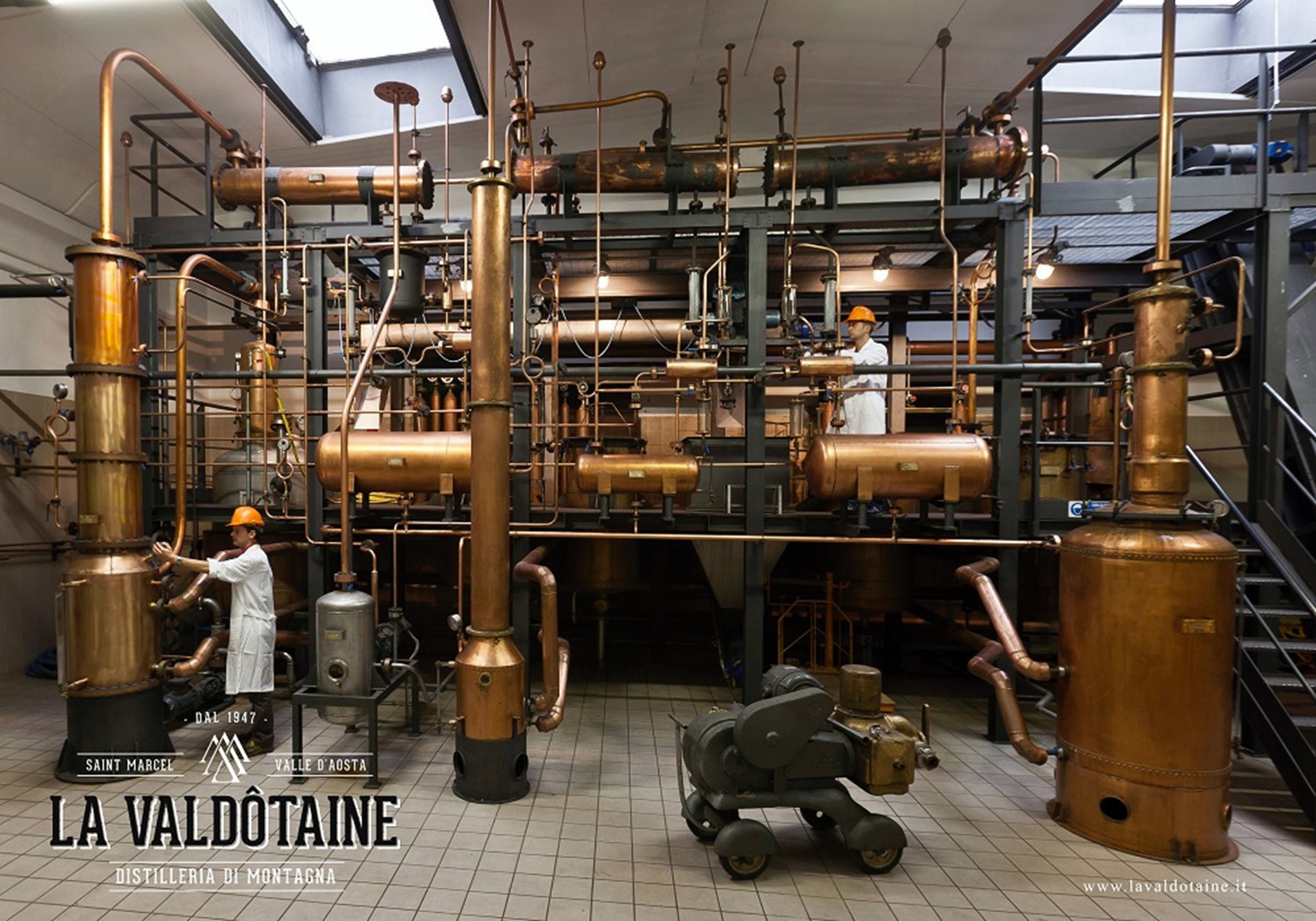 Depuis 1947, La Valdôtaine produit de grappas ainsi que d’autres distillats, liqueurs et amers, qui viennent s’ajouter aux confitures, marrons glacés et jambons crus.