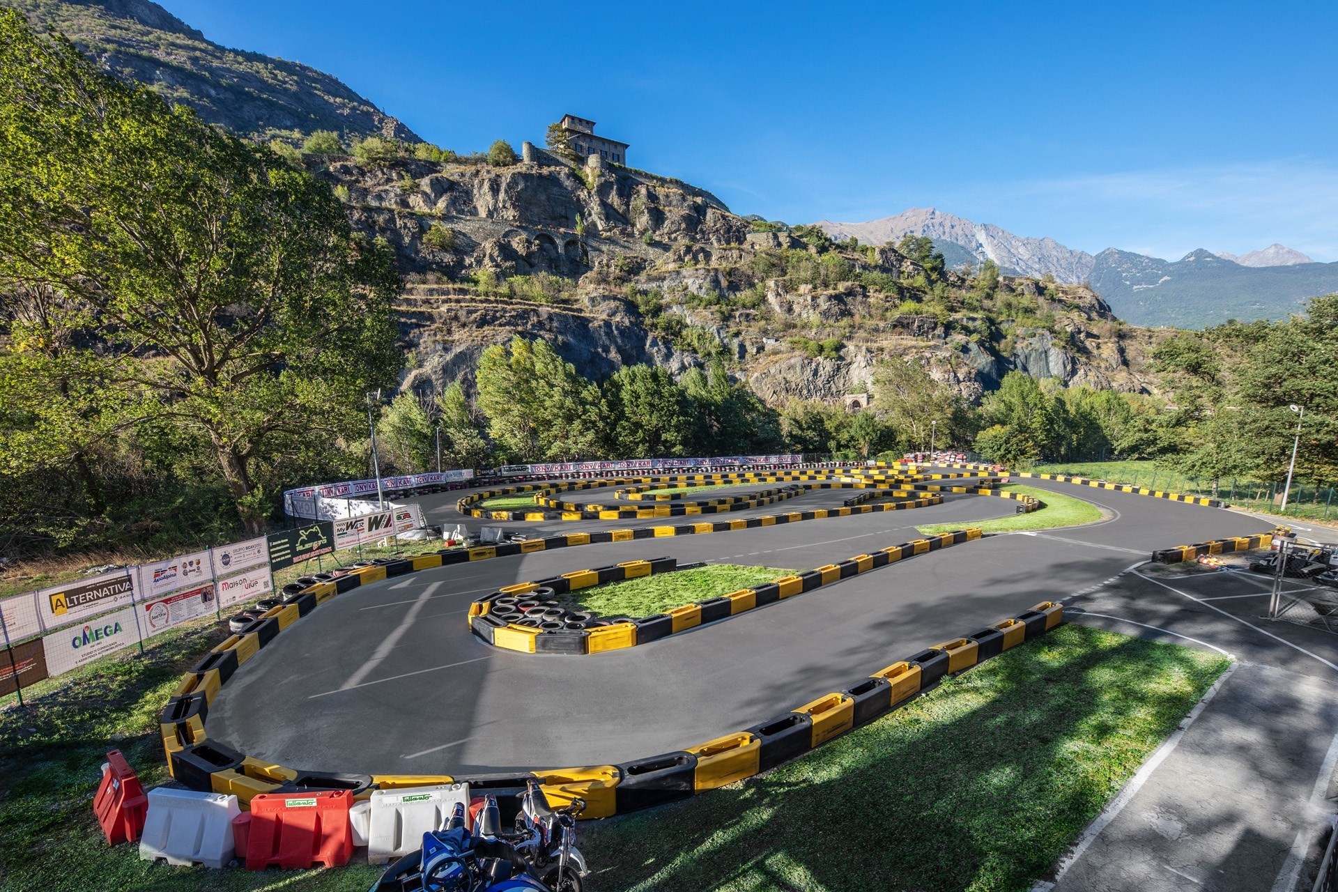 La piste de karting La Quercia 58 à Pontey a été asphaltée et sécurisée, elle offre: