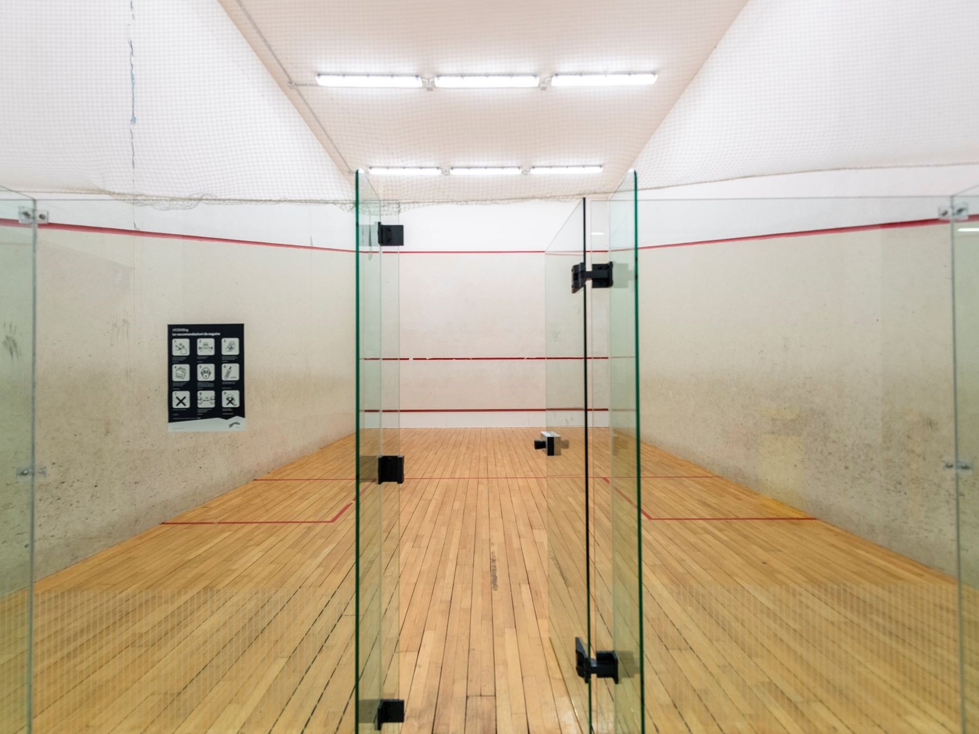 Les deux terrains couverts de squash sont situés à l'intérieur du Courmayeur Sport Center.