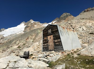 Le parcours continue sur des pentes morainiques vers la crête sud qu’il faut ensuite franchir. Après avoir traversé plusieurs petits vallons, dirigez-vous vers le Mont Dolent avant de rejoindre les deux bivouacs Fiorio.