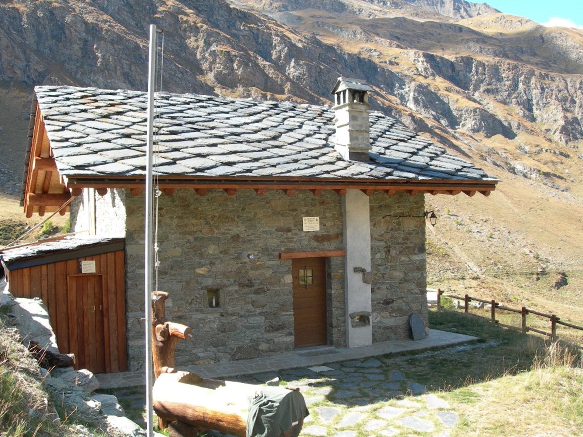 De Fénis suivre les indications pour la Val Clavalité, la route monte jusqu’ à rejoindre un petit parking où vous trouverez un panneau “ Bienvenue à Clavalité”. Garez la voiture et prenez la route en descente qui rejoind le beau plateau de Clavalité. De là, vous pourrez suivre le chemin de terre qui continue sur la gauche ou prendre la petite route du côté droit qui franchit le torrent à l’aide d’une passerelle pour rejoindre les maisons de Celey où vous continuerez sur un sentier pavé qui rejoint la route en terre (1h30). Continuez ensuite en direction du Col d’Estely, traversez l’alpage du même nom, puis après quelques virages, on rejoint le bivouac.