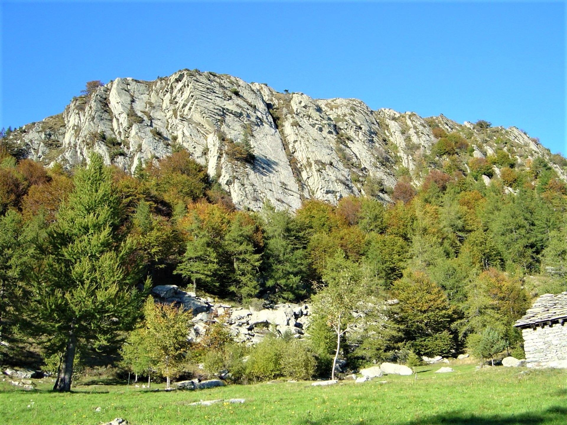 Le long du chemin on trouve des installations gardées par de petits insectes magiques. On monte encore plus haut, hors des arbres, jusqu’au sommet du Grand-Château pour admirer un panorama à couper le souffle sur la vallée centrale et la basse Vallée de Champorcher.