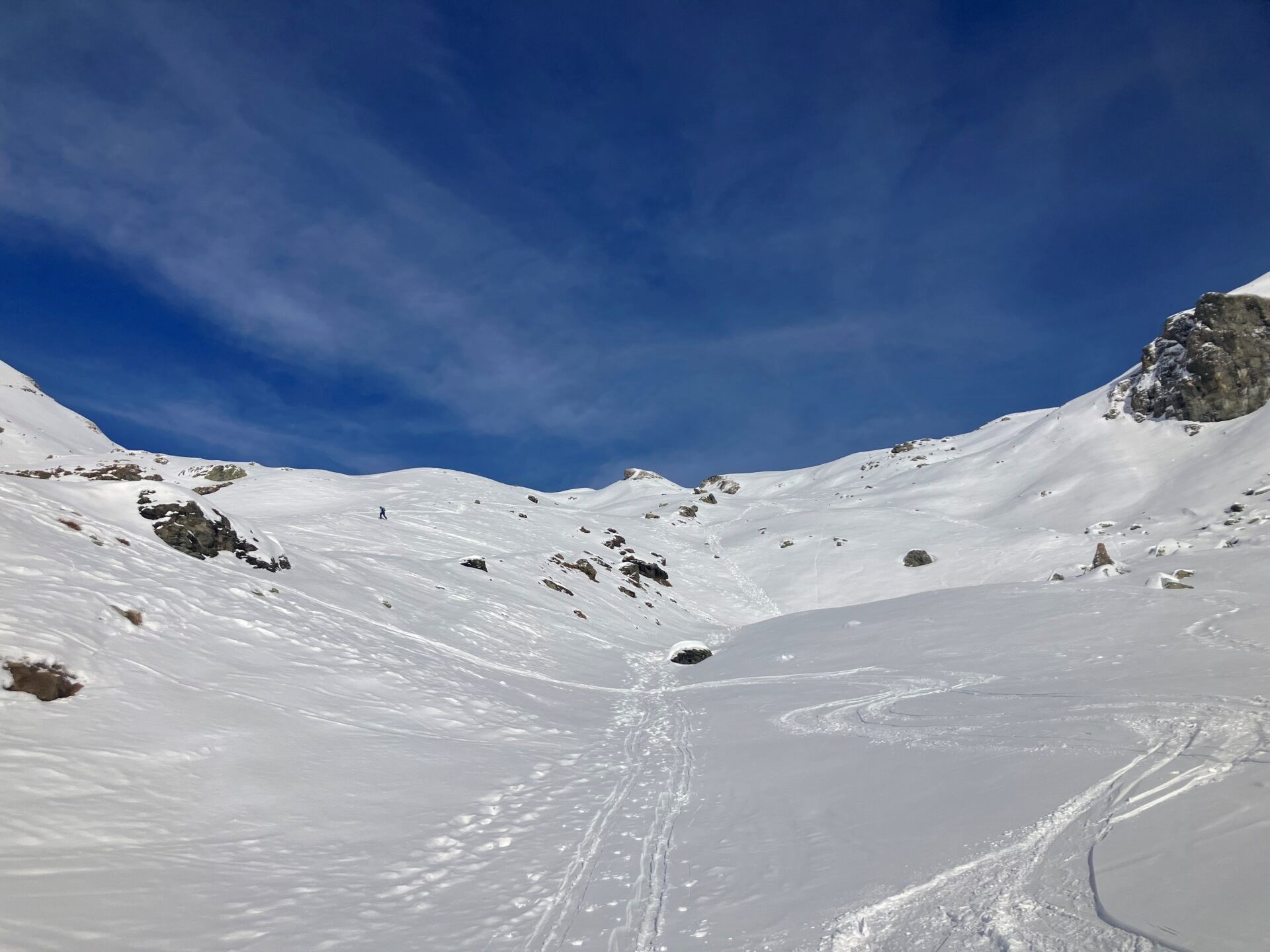 Progressivement, vous arriverez au pied du Vascotchaz (ou Vascoccia) : vous pourrez y apercevoir la chapelle blanche de Sarteur et sa croix en métal. Parcourez les derniers mètres qui vous séparent du long alpage de Vascotchaz (sentier non balisé). Continuez ensuite sur un versant un peu plus raide ; vous monterez en marquant plusieurs virages qui ne vous feront pas trop couper la pente. Dirigez-vous vers la droite, puis, après un tronçon plus raide, faites la dernière traversée vers la gauche afin de rejoindre les hauteurs : suivez enfin la crête jusqu’au sommet d’où vous profiterez d’une belle vue sur le massif du Mont Rose.