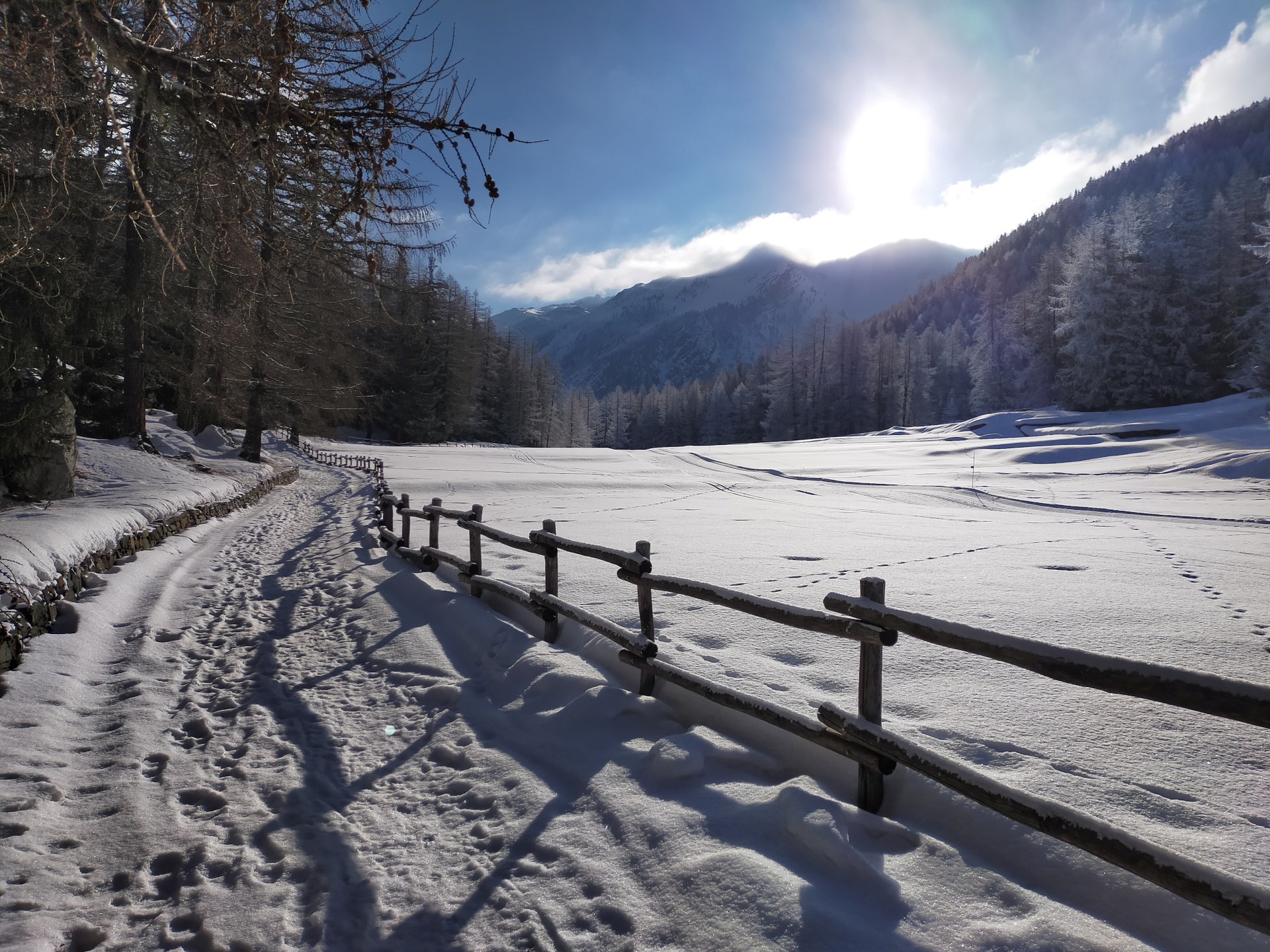 Depuis le centre de Cogne, suivez la route communale en direction de Lillaz, jusqu’à la petite église de Moline. Prenez sur la droite, où se trouve aussi le panneau du début du parcours, le sentier qui monte, dépasse la piste de ski de fond et atteint le “Stambeccaggio” (centre d’étude de la faune alpine). Traversez sur la droite la prairie sous le “Stambeccaggio” et avancer dans le bois. Après la jonction avec la piste de ski de fond continuez à monter sur la guache jusqu’à la bifurcation où commence la boucle qui peut être parcourue dans les deux directions. Si vous continuez en sens antihoraire, l’itinéraire rejoint le bar-restaurant puis se poursuit à côté des pistes de ski de fond et à travers le plateau enchanté de Sylvenoire. Au tournant, possibilité de descendre sur Champlong ou Lillaz. Le retour, entièrement immergé dans les bois, se caractérise par des personnages créés par des pierres, des plantes et des cristaux de neige.