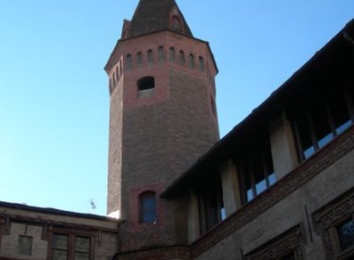 Entre la fin du XVe et le début du XVIe siècle, Georges de Challant, prieur de Saint Ours et grand mécène humaniste, a fait bâtir le prieuré à côté de l’église de Saint Ours : c’est une somptueuse résidence officielle, un édifice inspiré par les palais publics piémontais et lombards contemporains. C’est un mélange entre style nouveau et style ancien : la façade date de la Renaissance, les cadres des fenêtres étant ornés de carreaux de terre cuite, et les autres éléments comme la tour octogonale et les ogives sont des témoignages de l’architecture gothique.