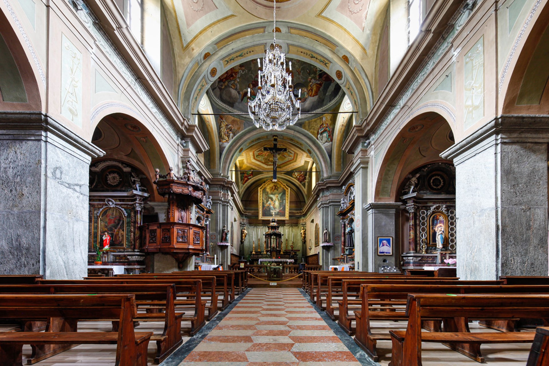 L’église paroissiale se situe au centre du village, près de la gare ferroviaire. Reconstruite en 1830 sur les fondations de la précédente, elle renferme de nombreuses fresques et un maître-autel imposant en marbre du XVIIIème siècle. Les œuvres artisanales en bois telles que le chantre, soutenu par des têtes de cariatides, la chaire finement ciselée, les confessionnaux, le baptistère, les bancs du chœur et les portes, sont intéressants. La tour carrée du clocher a été construite après l’église. Sa base est décorée d’un ancien bas-relief du XIIIème siècle représentant Saint-Pierre.