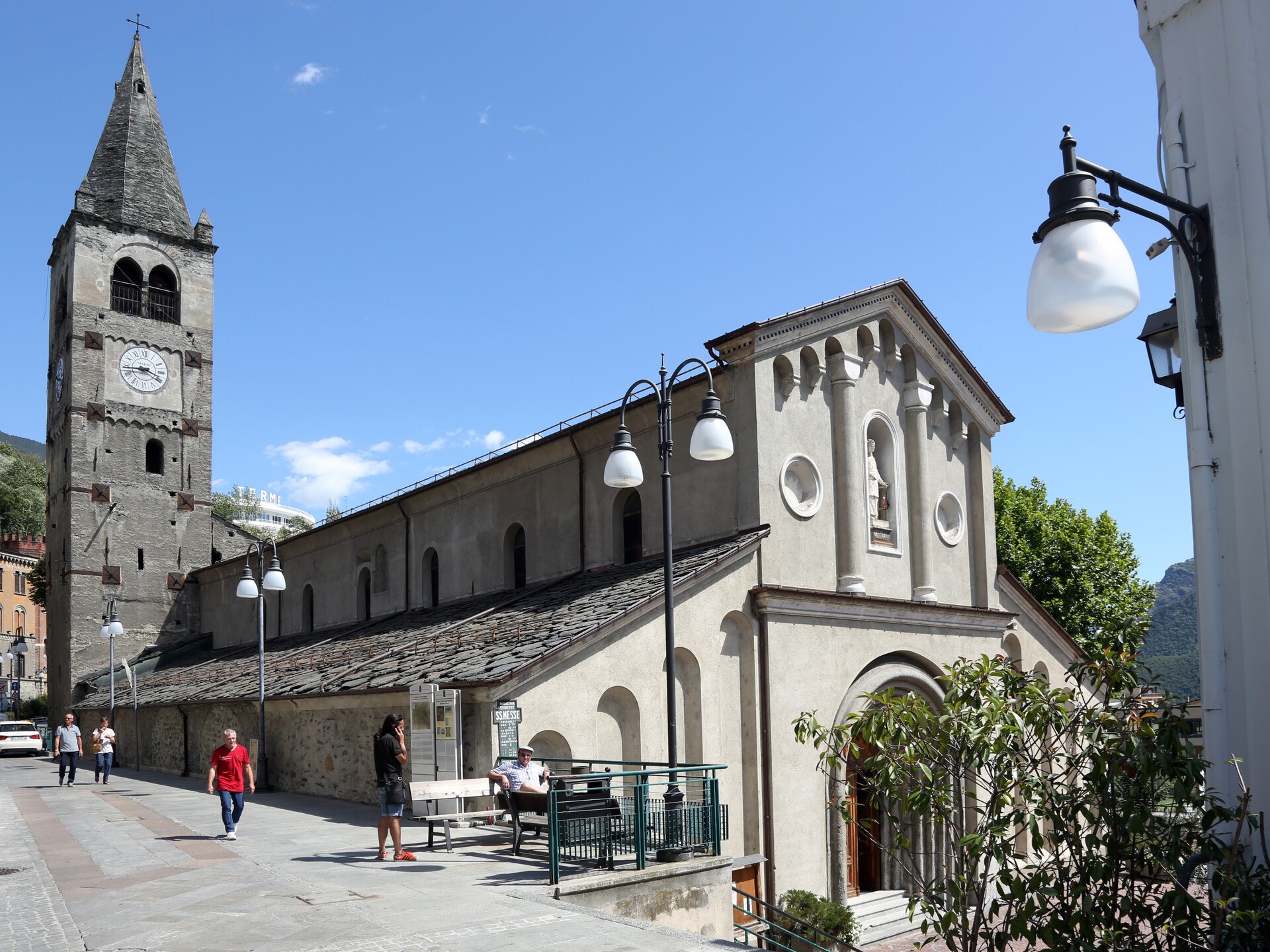 Elle se dresse sur les restes d’un bâtiment romain mis à jour à l’occasion de travaux de restauration récents et datant de 300 à 400 après J.C. Il s’agissait soit d’une grande villa patricienne, soit d’un bâtiment public ; il était doté d’un double système de chauffage et d’air pulsé sous le sol qui permettait de chauffer le “calidarium”.