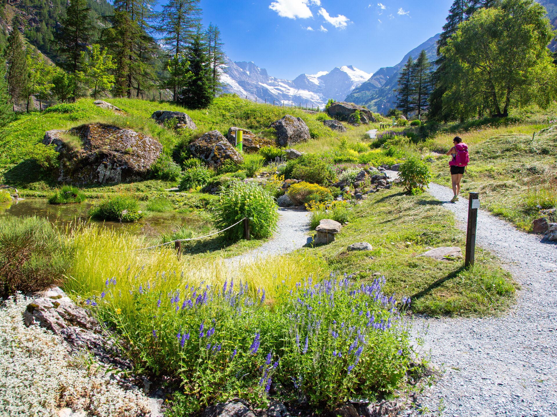 Le choix s’est porté sur Valnontey, pour son altitude modérée de 1700 mètres, pour la conformation du sol et l’exposition qui permettent de reproduire différents types d’habitats et pour le magnifique arrière-plan représenté par le massif du Grand Paradis. En 1964 une station de biologie spécialiste du milieu montagnard est établie à côté du jardin pour des recherches sur la flore et la faune du Parc. En 1971 la direction scientifique est confiée à la Commission d’études scientifique du Parc : on commence la restructuration du jardin sur des bases écologiques et on réalise l’herbier de la flore spontanée et un stock de semences.