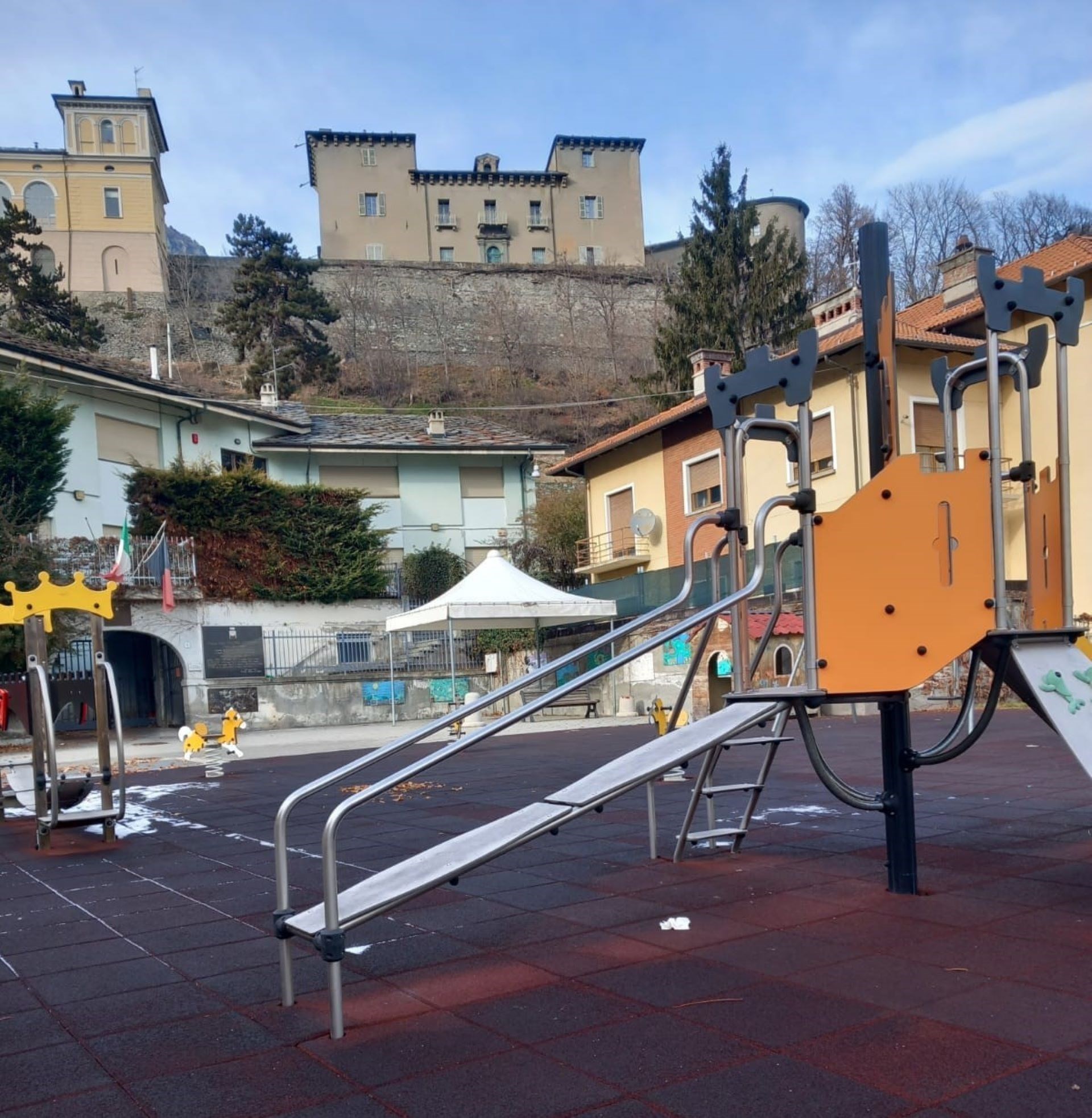 Situato in centro paese, ai piedi del parco del Castello Passerin d'Entrèves.