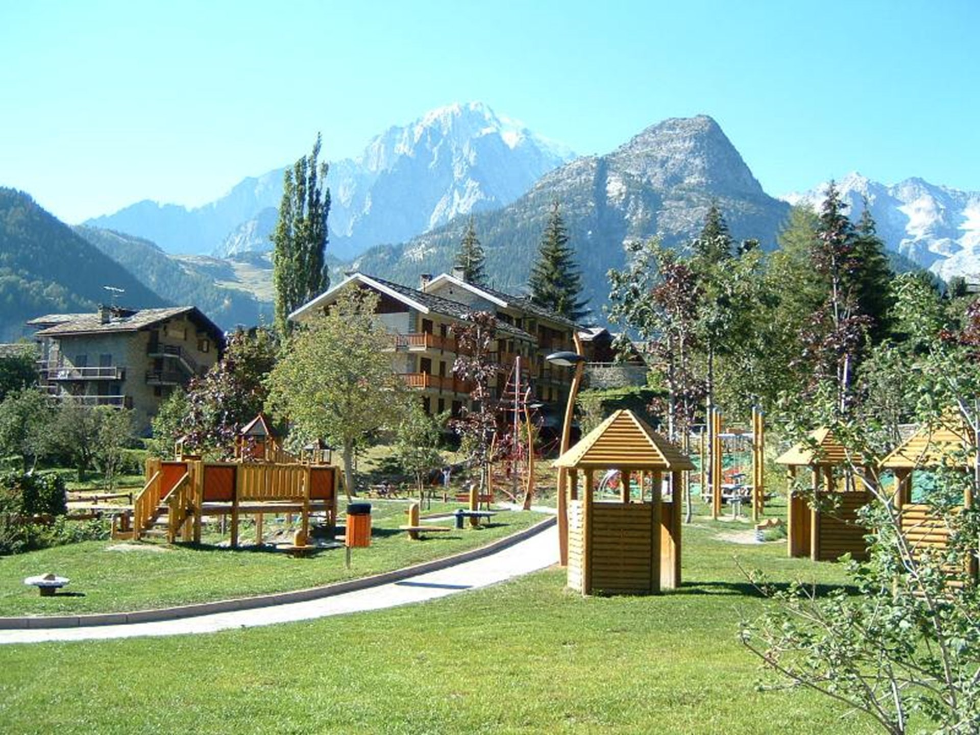 Il parco giochi gode di un’ottima vista sulla catena del Monte Bianco.