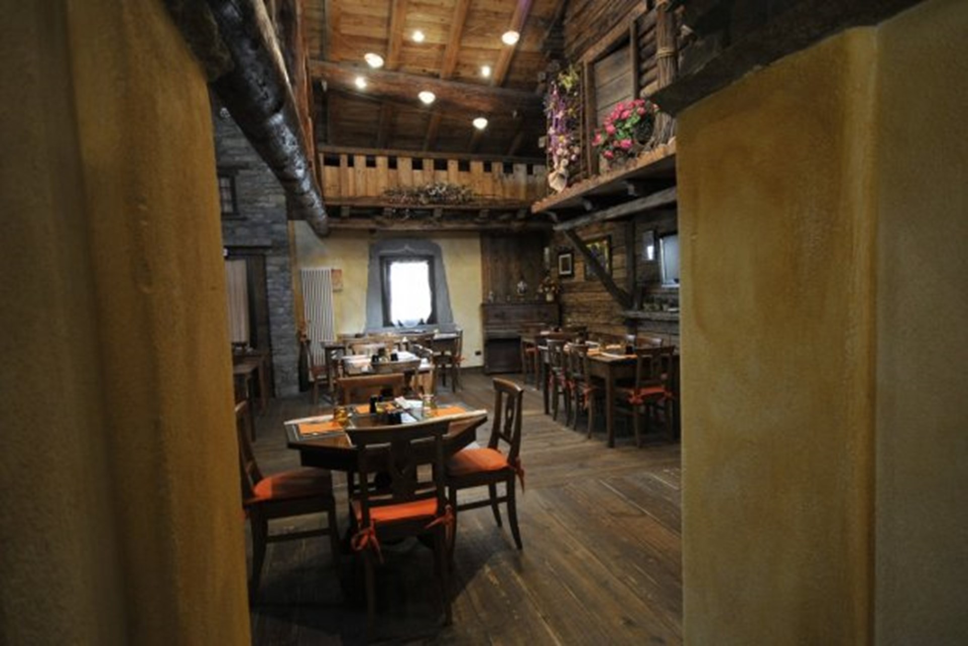 Il locale, in pietra e legno, rappresenta lo stile valdostano
