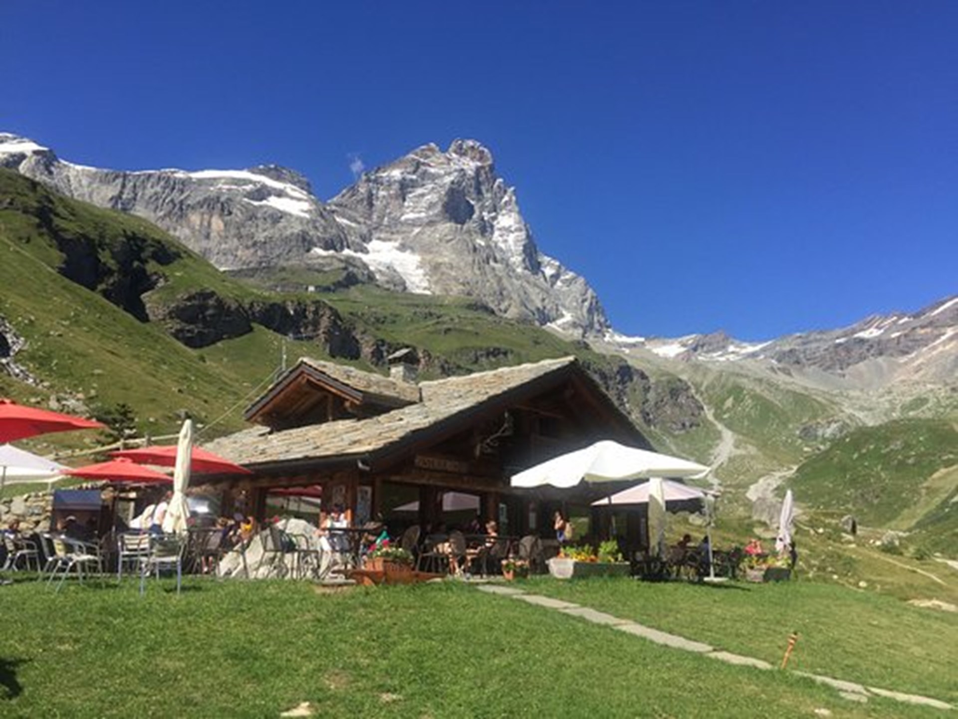 Chalet Baita Bar Ristorante tipico sulla strada che conduce al Monte Cervino in un parco naturale. Raggiungibile a piedi in mezz’ora circa di cammino, con mountain bike o jeep privata . Vendita di prodotti tipici locali e solarium.