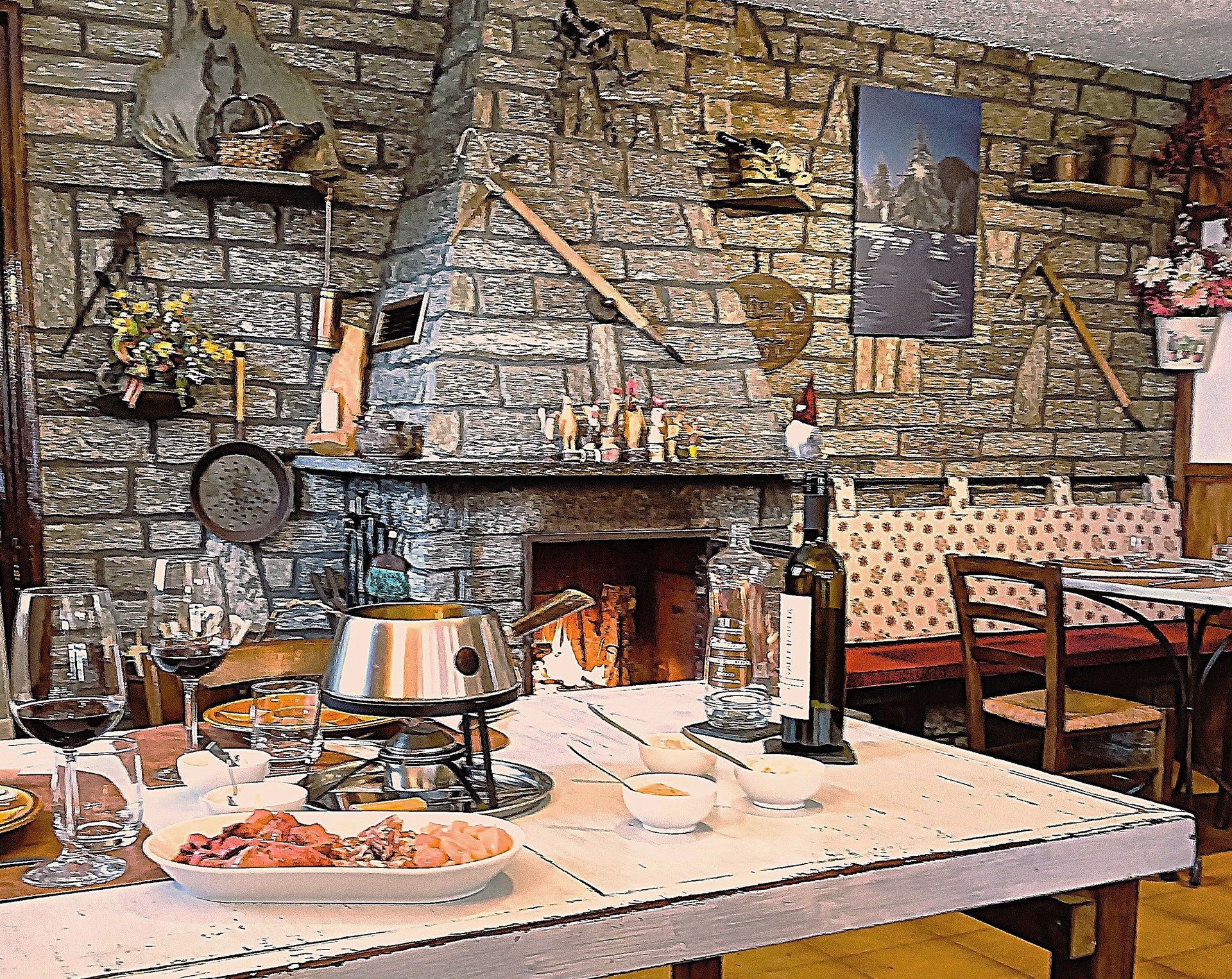 Vecchia trattoria di montagna, caratterizzata da una calda accoglienza, cucina casalinga e genuinità, con un occhio di riguardo alla riscoperta di antiche ricette della tradizione valdostana e alla proposta di piatti originali preparati con ingredienti tipicamente VDA, per offrire una proposta di "Valle d'Aosta insolita".