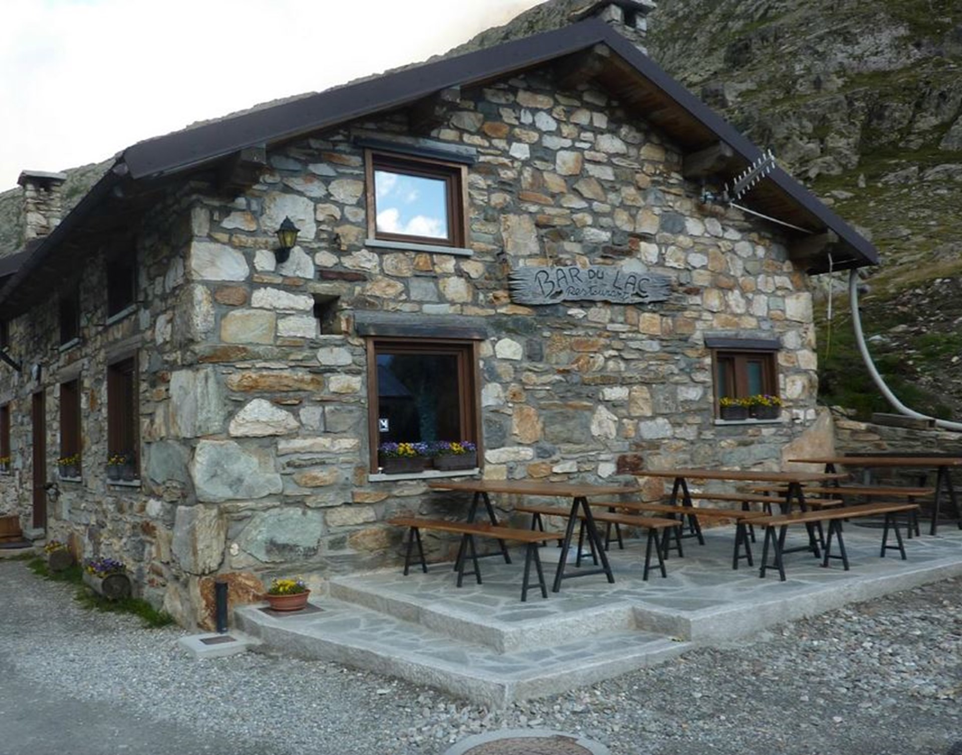 In una cornice naturale unica, incastonato tra le montagne a 2475 metri, propone una cucina semplice e tradizionale, una atmosfera calda e accogliente, un panorama da favola. Ampia scelta di vini.