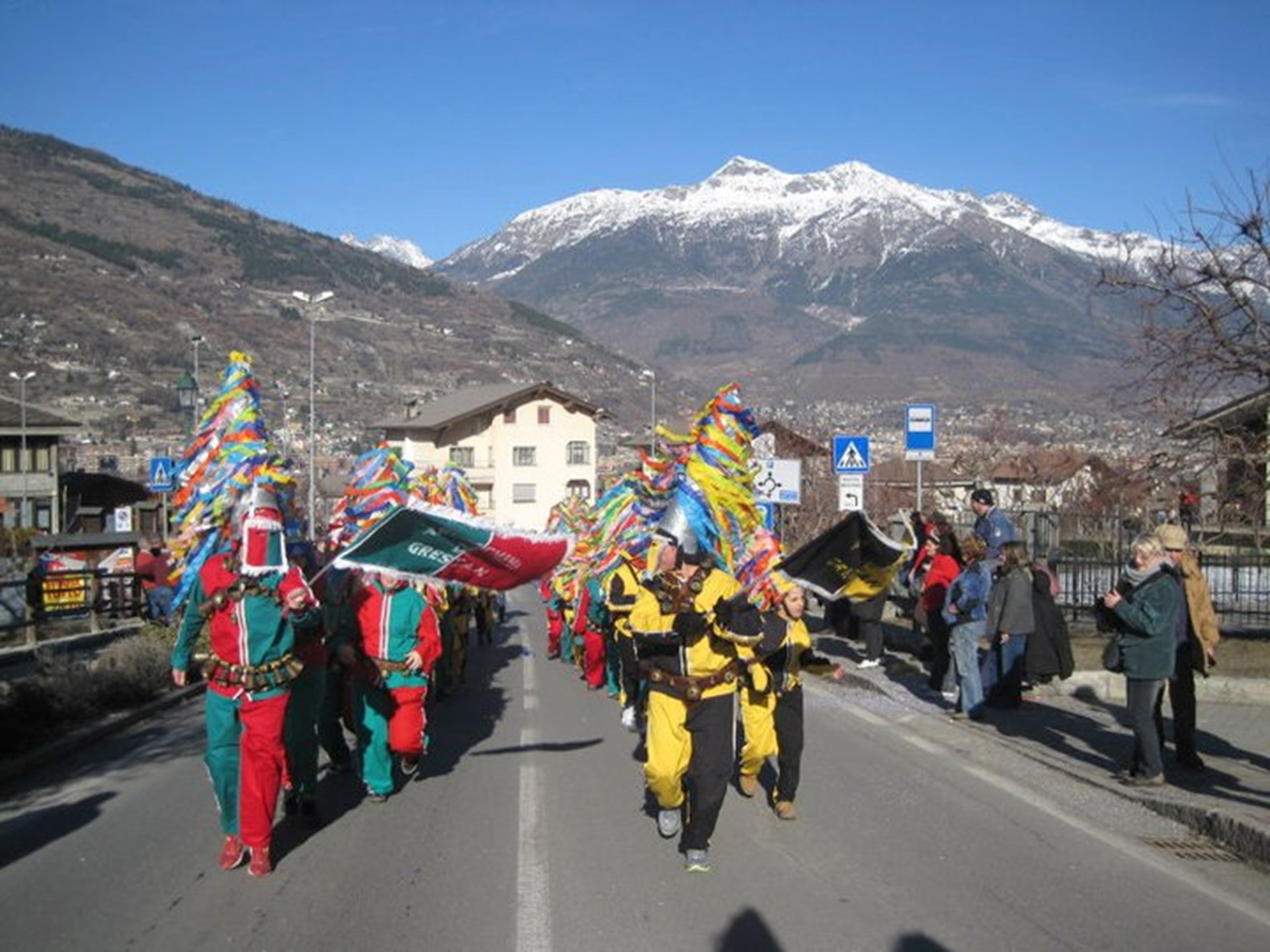 - ore 15.00: Sfilata delle Maschere lungo le vie del borgo del paese con il gruppo degli Arlecchini di Gressan. Accompagnamento musicale tradizionale