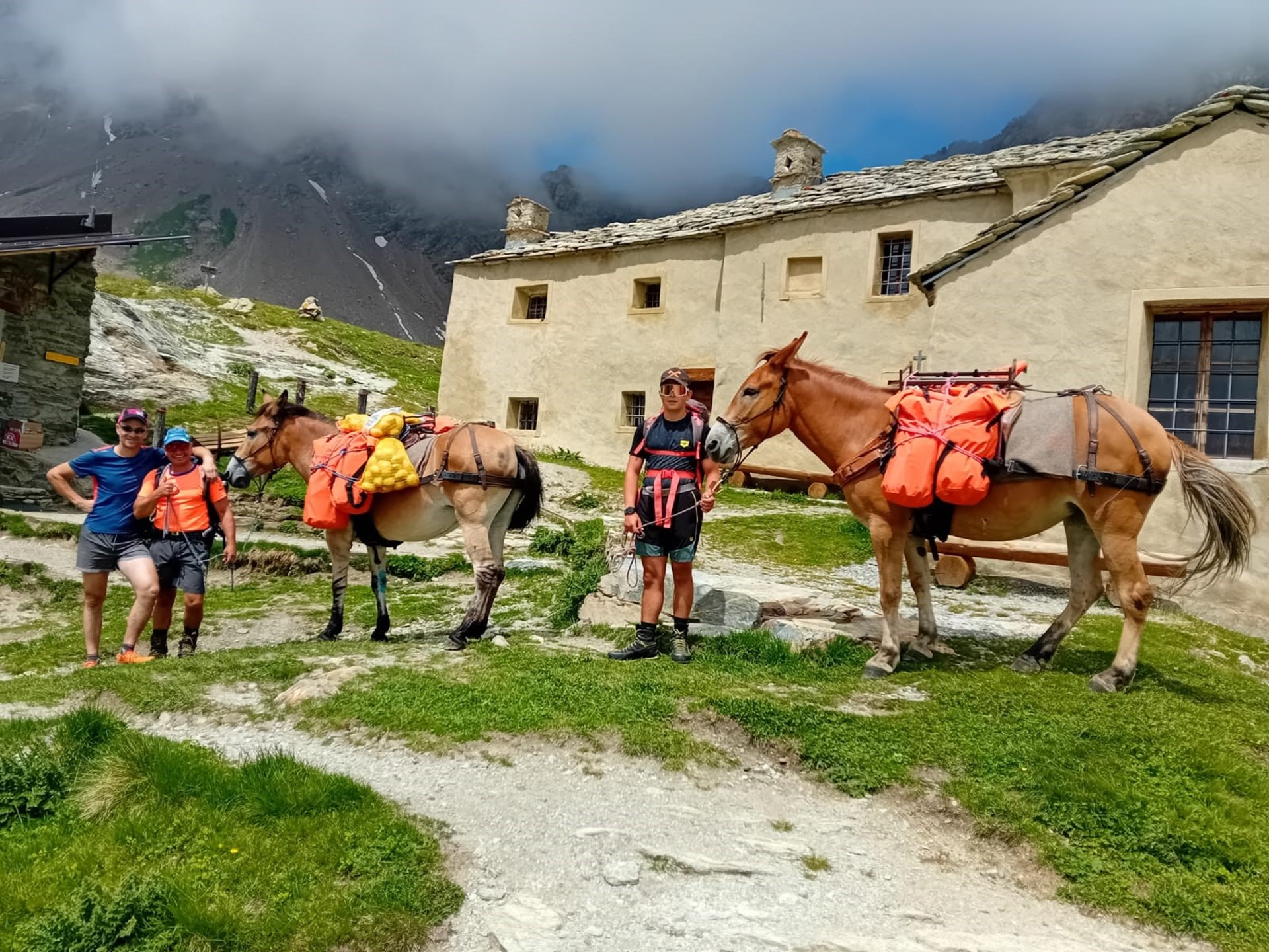 Con l'accompagnatore di media montagna, i partecipanti possono vivere un'avventura in montagna, dormendo in tenda e facendo escursioni in compagnia delle mule Naomi e Valentina e degli asini Geppo e Martino.