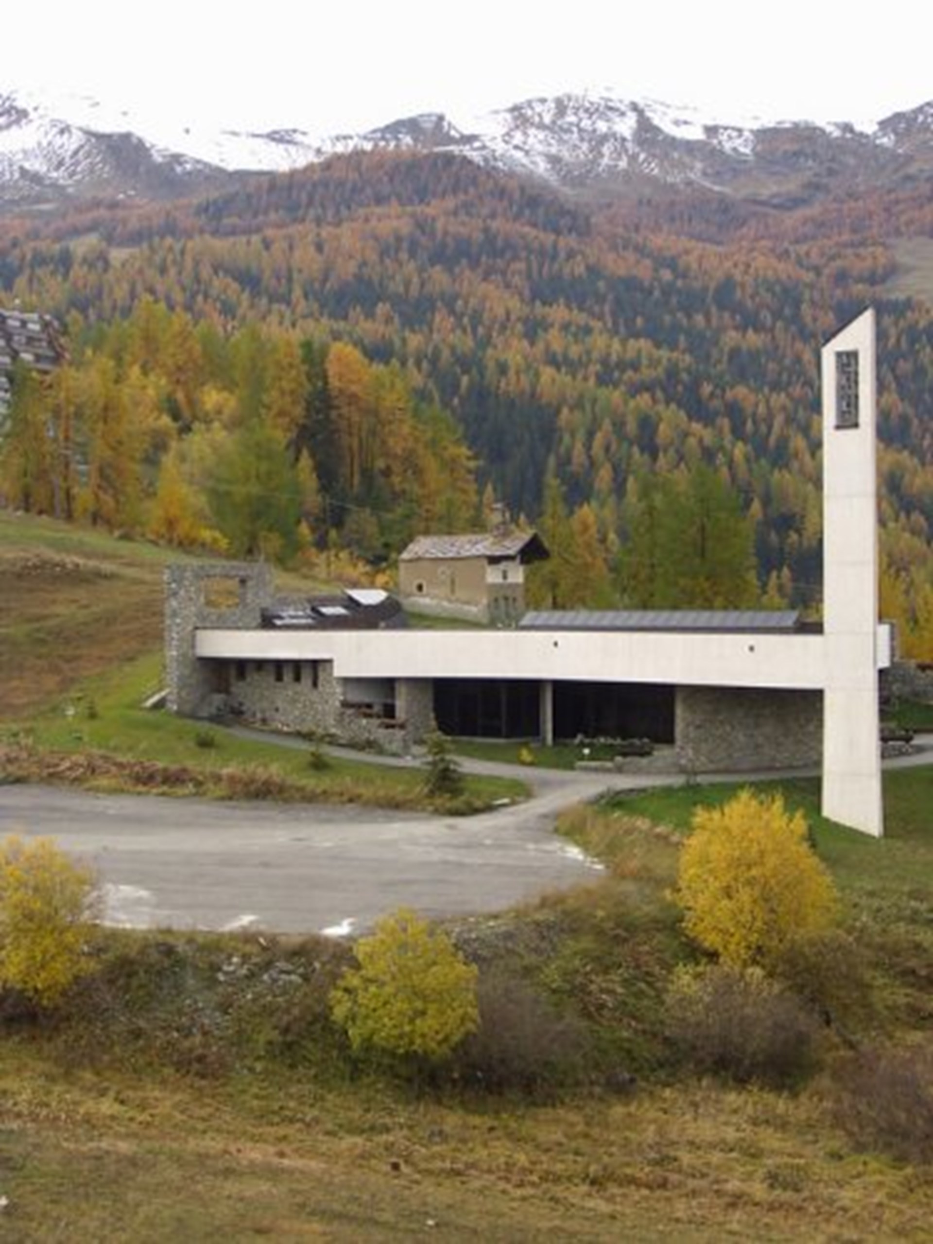 Dal piazzale di arrivo della telecabina Aosta – Pila, si scende fino alla Chiesa.