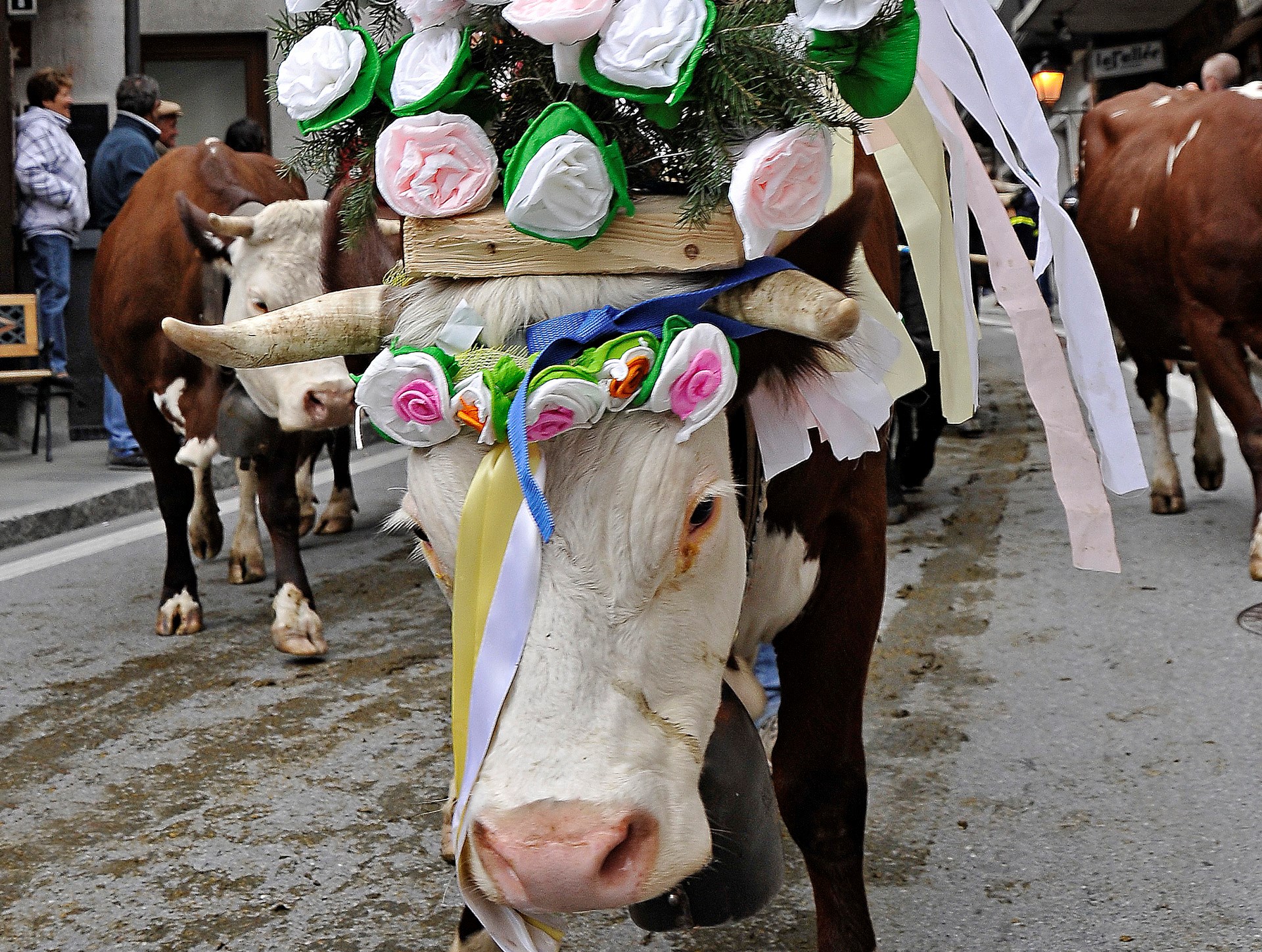 La vera e incontrastata protagonista della Dézarpa è infatti lei, la mucca, che per tornare a valle viene spazzolata con cura e addobbata con ornamenti multicolori.