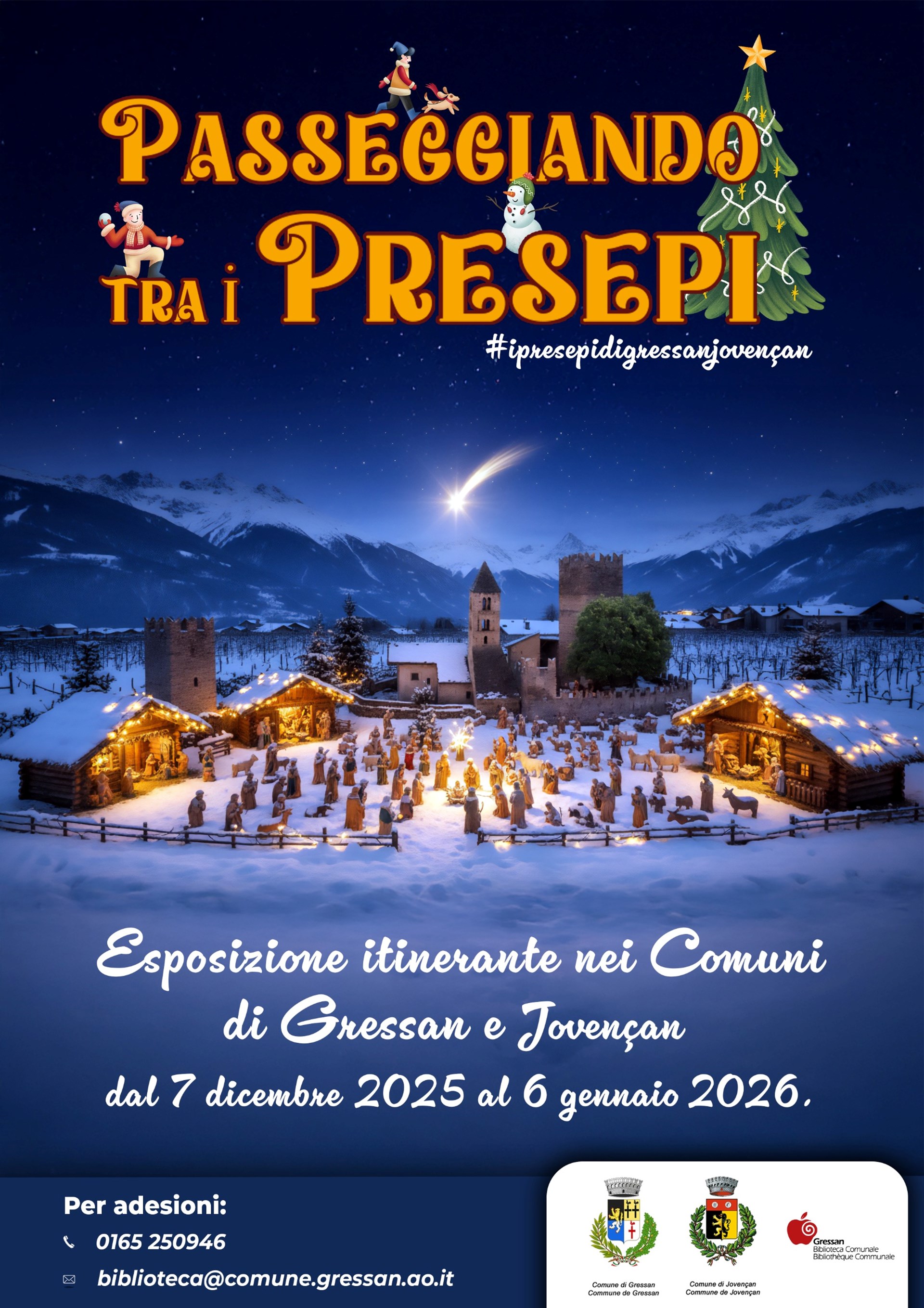 Una tradizione che tra Gressan, Jovençan e Pila è rimasta viva e porta alla scoperta di piccoli capolavori disseminati sul territorio. Permette a chi ha voglia di fare due passi di scoprire i piccoli capolavori che gli abitanti di Gressan e Jovençan hanno preparato per festeggiare il Santo Natale!