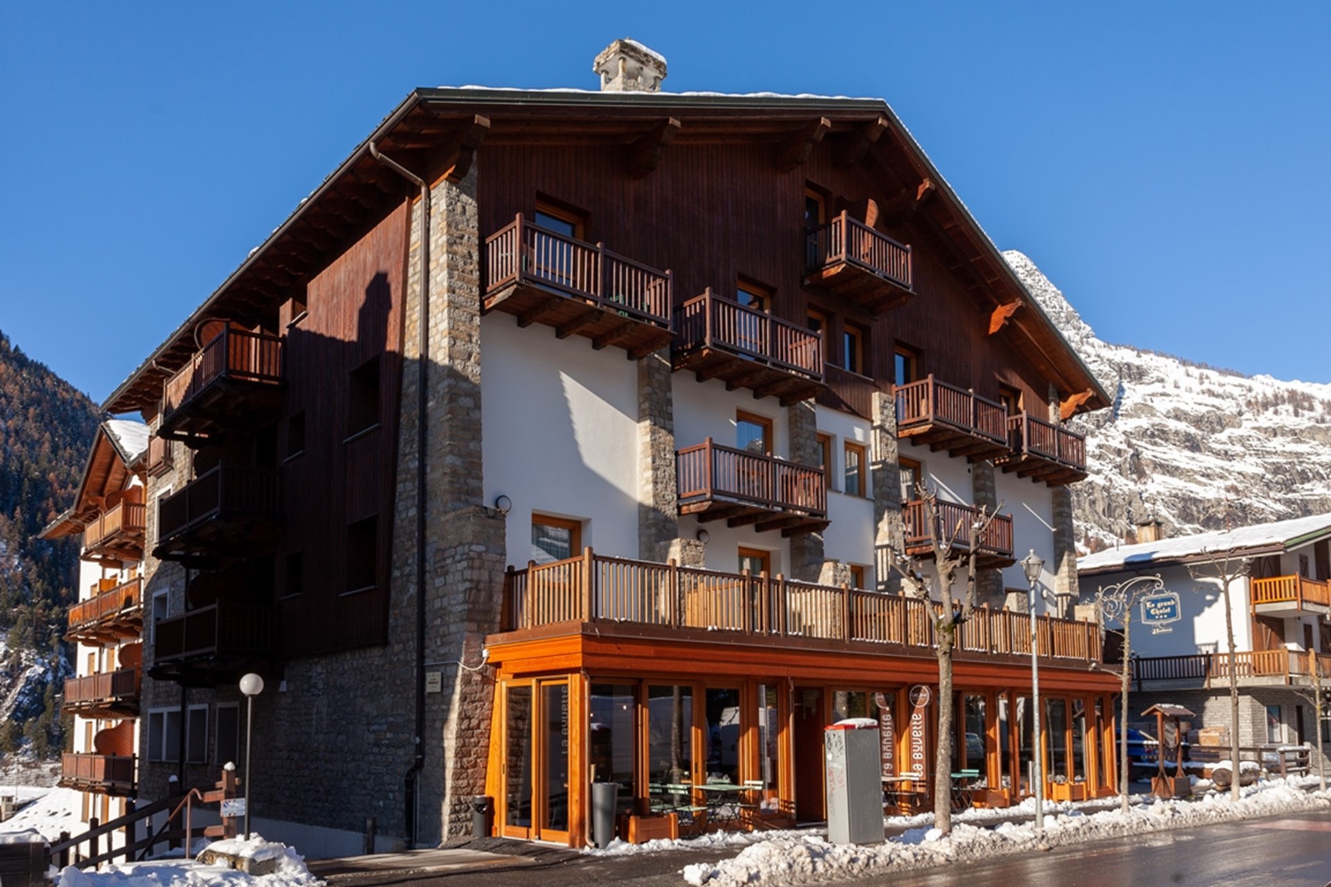 Il Residence Le Grand Chalet, il cui edificio un tempo era adibito a cinema, dopo una lunga e completa ristrutturazione, nel 2004 ha iniziato la sua nuova attività di Residenza Turistico Alberghiera.
