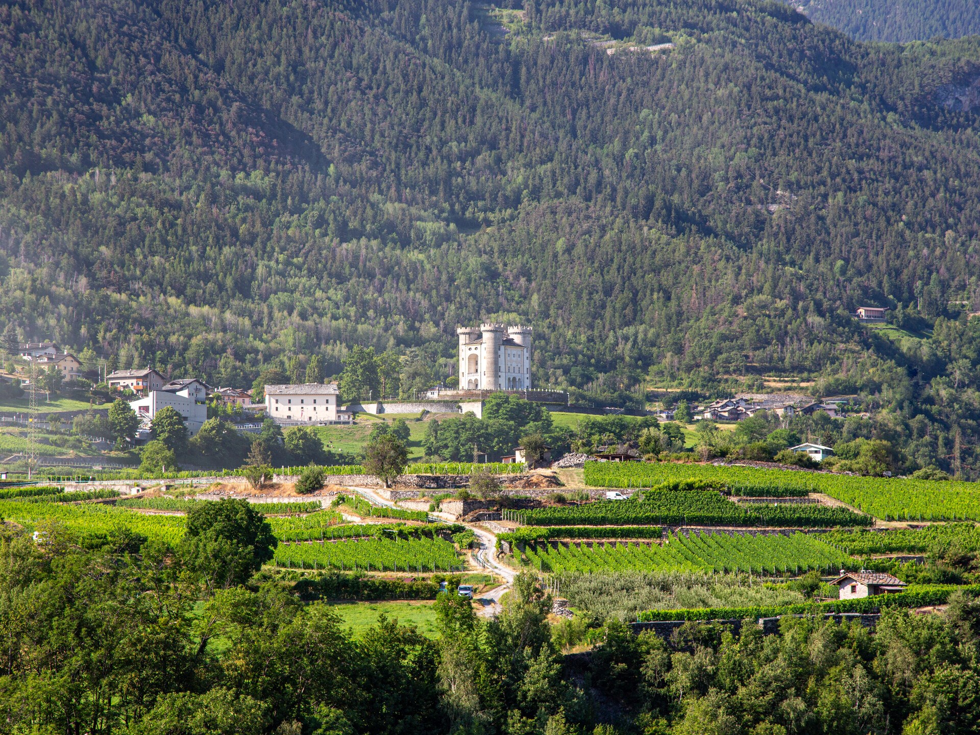 Aymavilles, posta a 646 metri di altitudine sulla destra orografica della Dora Baltea all’imbocco della valle di Cogne, offre al visitatore un paesaggio variegato e ben coltivato, nel quale le vigne, alternate ai meleti, sembrano abbracciare il castello, che domina l’intero territorio. La localizzazione favorevole ha permesso un fiorente sviluppo della viticoltura, che trova il suo punto di forza nella produzione del vino rosso Torrette e di molti altri rinomati vini locali. Il nome Aymavilles probabilmente proviene da Caius Avilius Caimus originario di Padova, promotore e proprietario del ponte-acquedotto romano Pont d’Aël costruito nell’anno 3 a.C.