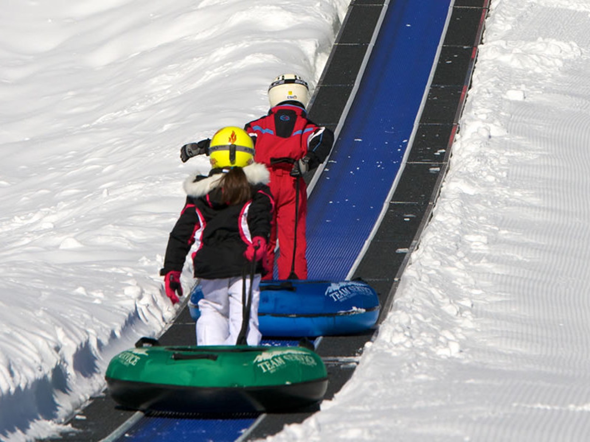 Si trovano due tapis roulant, uno per un emozionante battesimo degli sci e l’altro per scivolare.