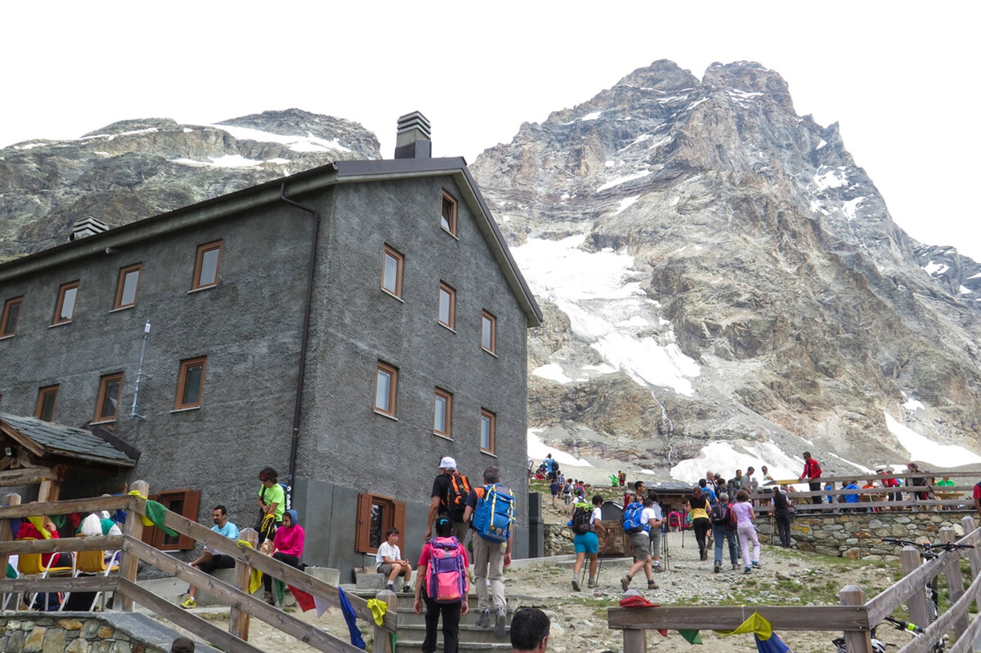 Raggiunta la stazione di arrivo dell’impianto di Plan Maison, proseguire inizialmente sulla sterrata n. 15 fino a raggiungere un crocevia. Imboccare il ramo di sinistra, itinerario ex AV3 che, prima su strada quindi su sentiero, tra pascoli di alta quota, supera alcuni dossi ed una zona cosparsa di grossi massi e numerose sorgenti. La passeggiata prosegue in salita in direzione delle morene glaciali del versante sud del Cervino fino a raggiungere un grazioso laghetto di un intenso colore blu a pochi passi dal rifugio. Ora, si imbocca il sentiero, via normale per l’ascensione del Cervino, che sale in direzione ovest sopra il rifugio per portarsi sopra una marcata costola rocciosa. Proseguendo verso nord, si guadagna infine la Croce Carrel in memoria della gloriosa guida valdostana.