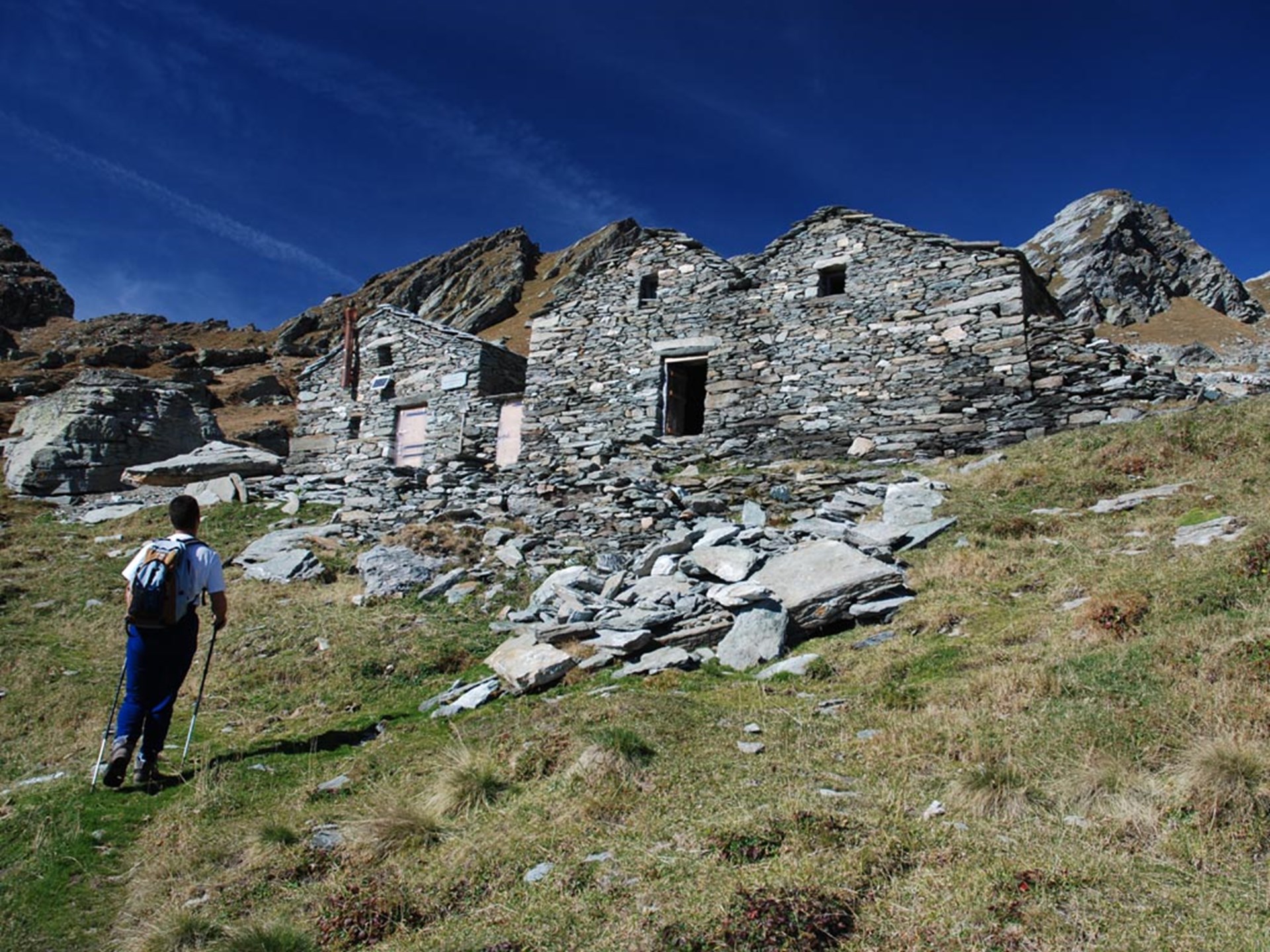 Da Mühnu (Munu) si prosegue sul sentiero n. 2 per raggiungere la grande croce in pietra e quindi l’ alpe Pianhi e poco distante l’ alpe Merhui (2230m). Proseguendo poi su pascoli d’alta quota si raggiunge il bivio che porta a destra verso il bivacco Cravetto (alpe Chlekch 2422m), mentre svoltando invece verso sinistra si raggiunge dopo poco l’ alpe Balmalunge (2350m) e da lì il Colle di Chasten posto a 2555 m con circa 25/30 min di cammino.
