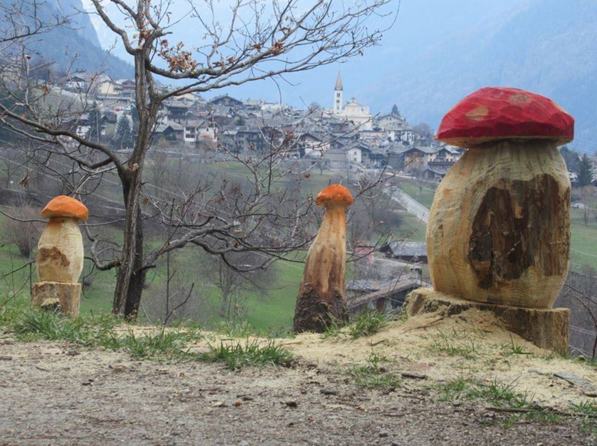 Arrivati ad un quadrivio si prosegue dritto. Qui tra i funghi colorati fanno la loro comparsa elfi, gufi e cuori.