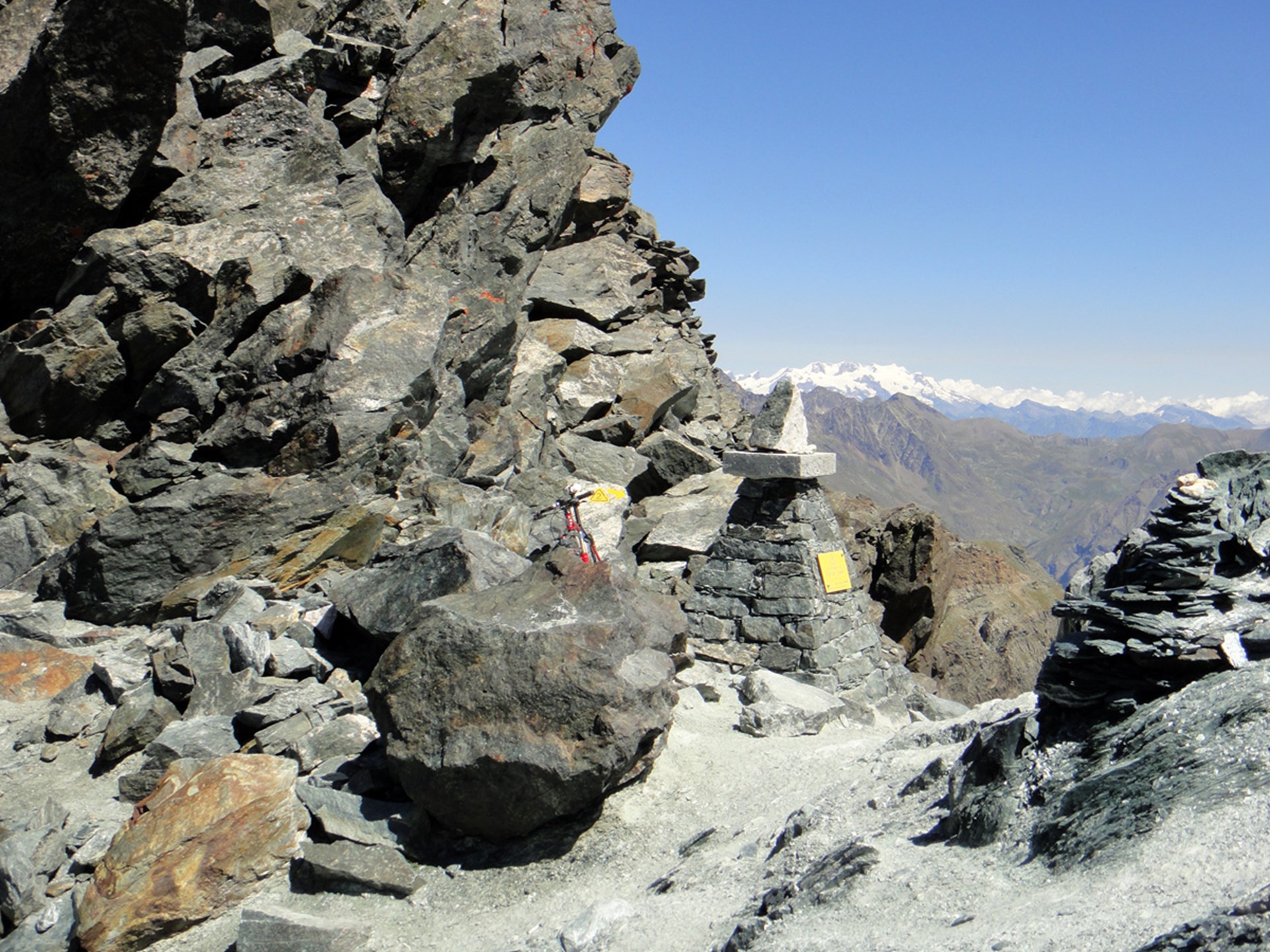 Da qui l’itinerario continua nel vallone su un lungo pianoro, risale e poi attraversa con un ponticello il torrente Lévionaz, quindi si inerpica su terreno pietroso fino a raggiungere il punto più alto delle alte vie: il col Loson, che sfiora i 3.300 metri di quota.