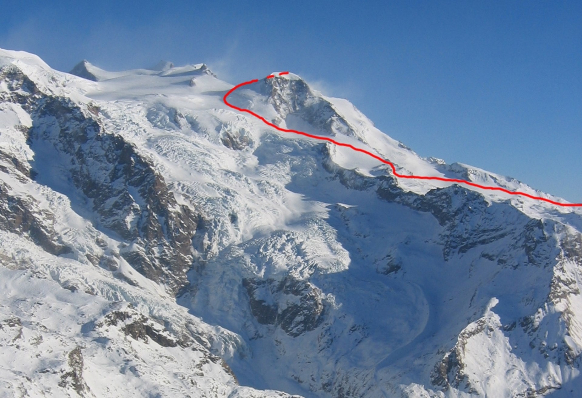 Salire sulla destra il ghiacciaio di Garstelet lasciando sulla sinistra il rifugio Gnifetti 3647 m. Raggiungere la base della Piramide Vincent, aggirarla sulla sinistra e, facendo attenzione ai numerosi crepaci, raggiungere quota 4000 m. Svoltare quindi a destra e lungo il facile pendio nord, raggiungere la cresta sommitale e infine la cima.