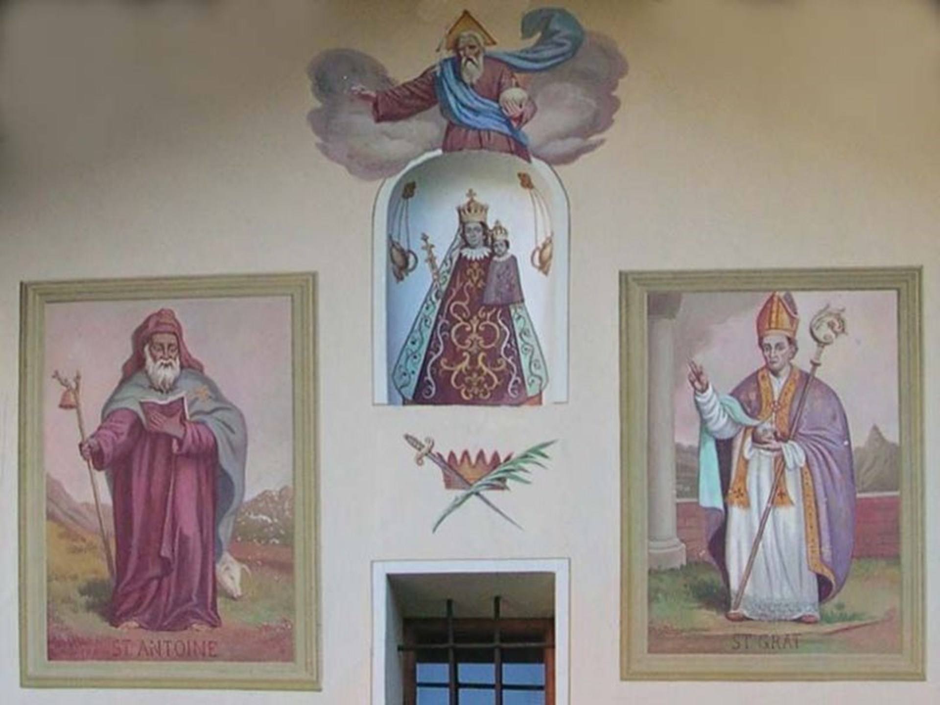 Euillaz - situata negli alti pascoli di Valtournenche, è raggiungibile in un’ora di cammino da Champlève. Il trave riporta la data del 1860. È dedicata alla Madonna de la Salette, rappresentata nell’affresco della facciata.