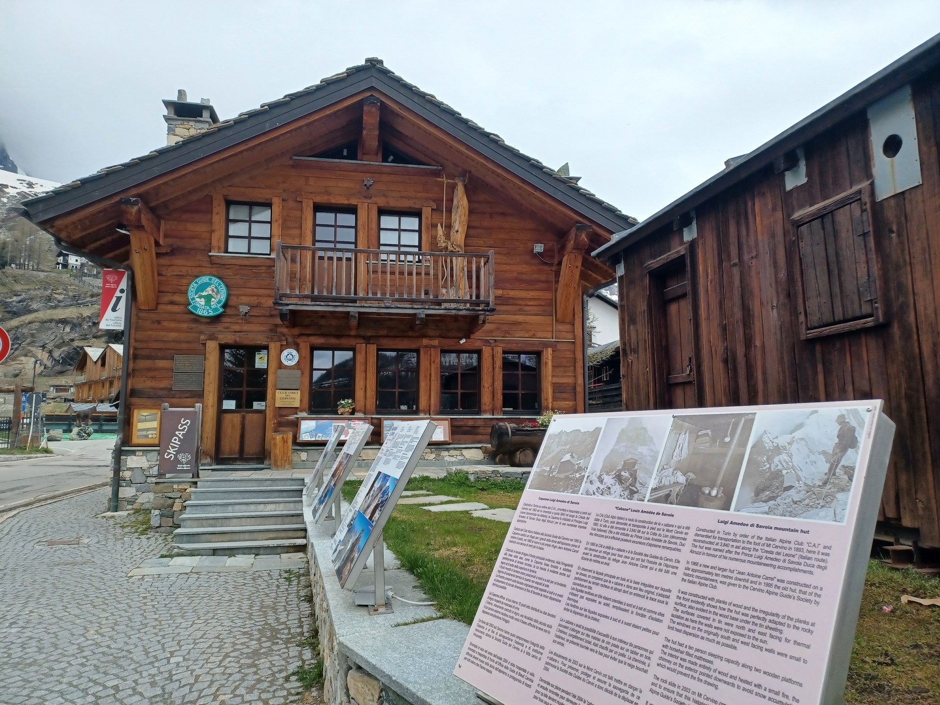 Il Museo delle Guide Alpine del Cervino è allestito nella Sala Franco Oberti, al primo piano della sede della Società delle guide alpine.