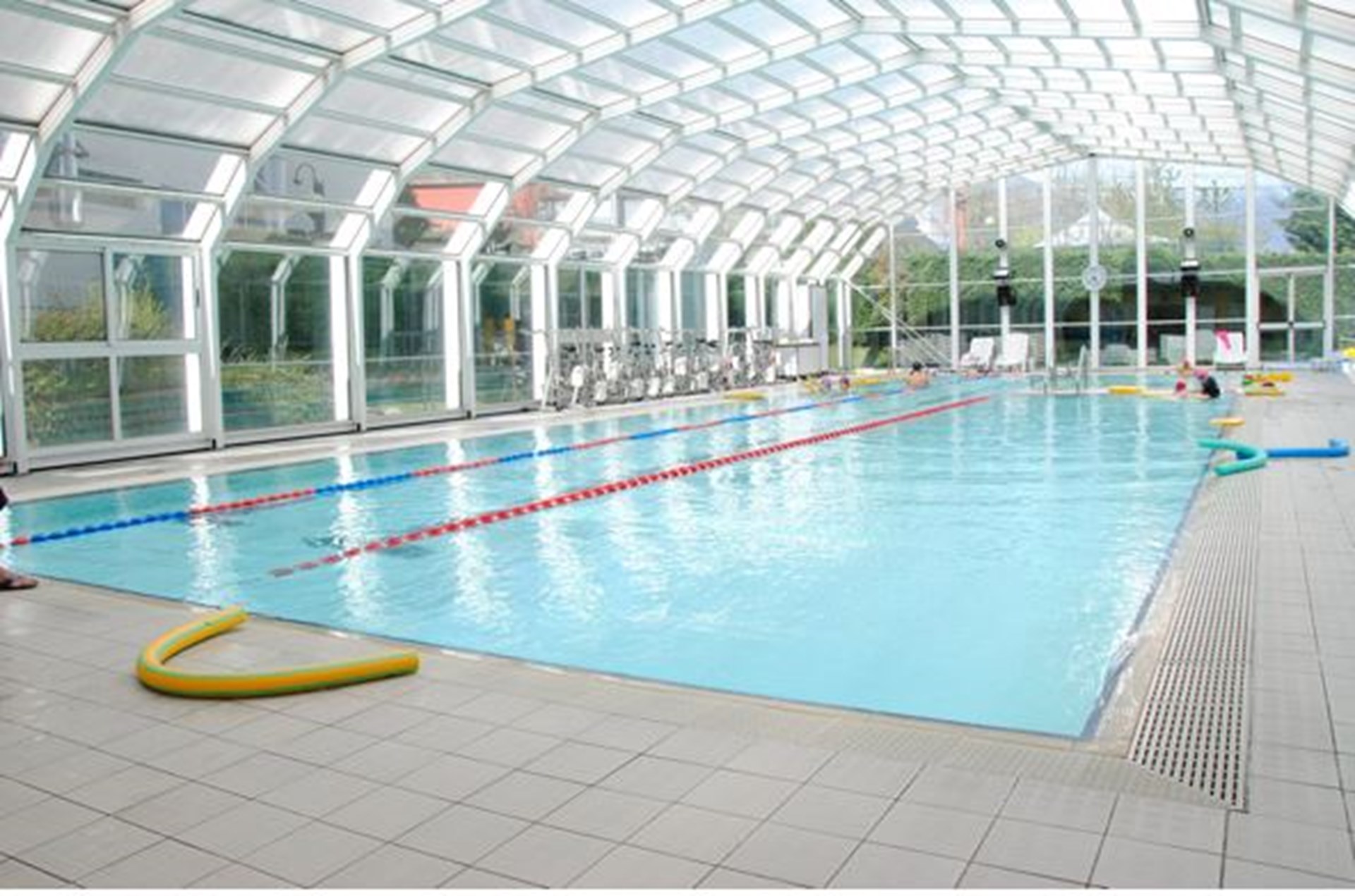 Piscina coperta riscaldata (23,40 × 7,20 mt) a profondità costante di 120 cm nella parte principale e 60 cm nella parte bimbi. L’acqua è sempre confortevolmente calda tra 30 e 31° C tutto l’anno.